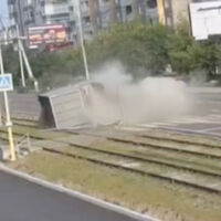 В Улан-Удэ грузовик опрокинулся на трамвайные пути