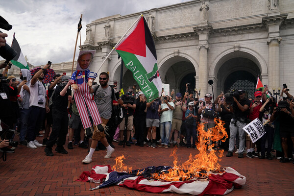 В Вашингтоне сожгли флаги США и чучело Нетаньяху