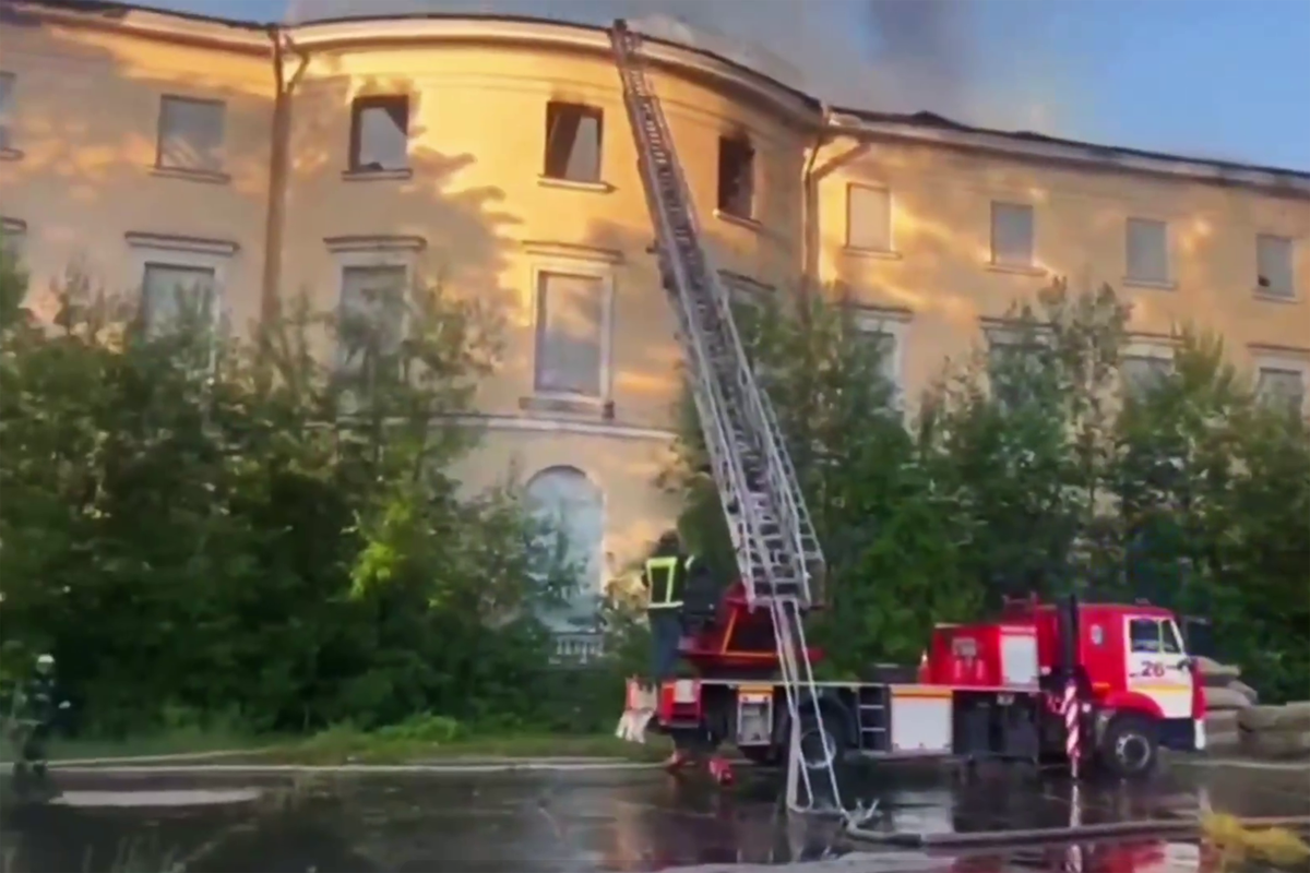 Горящее здание — это дворец княгини Ольги Палей, он является памятником архитектуры регионального значения. По данным МЧС России, пострадавших нет.
