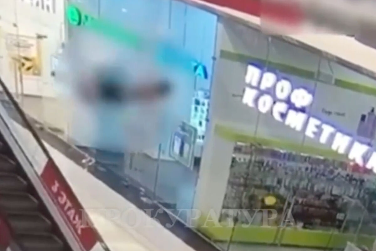 Шестилетний мальчик, находясь на территории ТЦ без сопровождения родителей, упал со второго этажа на эскалатор. На опубликованных ведомством кадрах видно, как ребенок балуется и залезает на перила движущегося эскалатора, затем он теряет равновесие, переваливается через стеклянное ограждение и летит вниз.