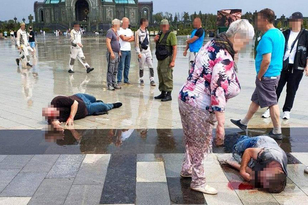 «На площади перед Главным Храмом Вооруженных Сил России молния попала в двоих мужчин и девушку. Последняя встала сама, а мужчины остались лежать на земле», — говорится в сообщении.
