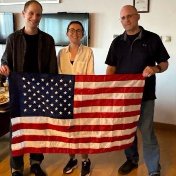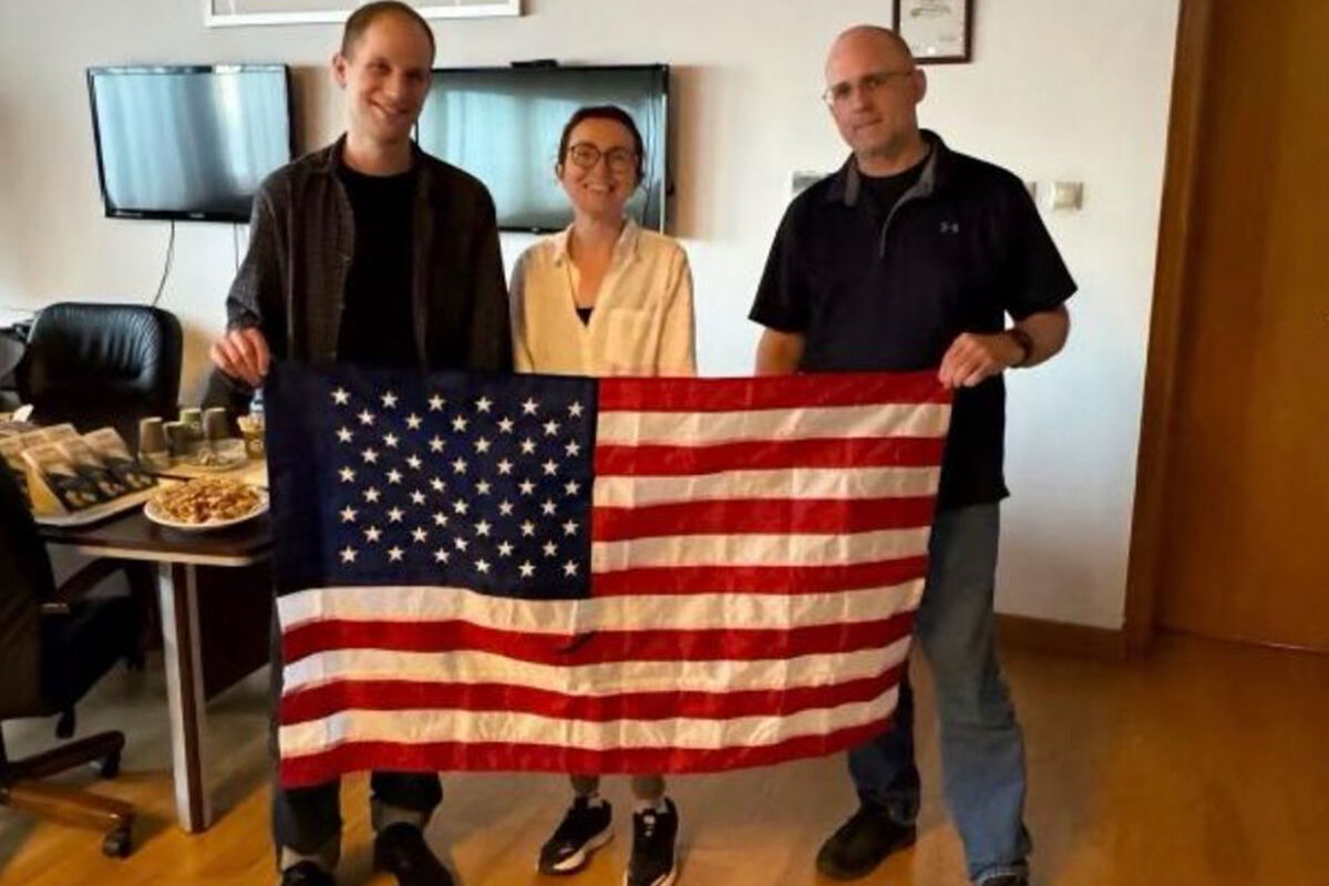 В сети опубликовано первое фото журналиста The Wall Street Journal (WSJ) Эвана Гершковича, бывшего морпеха Пола Уилана и журналистки Алсу Курмашевой. Снимок на своей странице в соцсети разместил журналист Петр Сауэр.