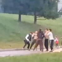 В какой-то момент один из нападавших пырнул жертву ножом в ногу. Пострадавший уехал на скорой, но отказался от госпитализации. Злоумышленников сейчас ищут.