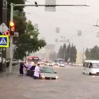 «Отметим, что система ливневой канализации не может сразу принять такой объём воды, для этого нужно время», — говорится в сообщении горадминистрации.