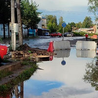 Костромичка отметила, что из-за сильных дождей котлованы, где ведутся работы, затопило, и уровень воды сравнялся с тротуаром. Женщина посетовала, что в том месте не было никаких предупредительных знаков.