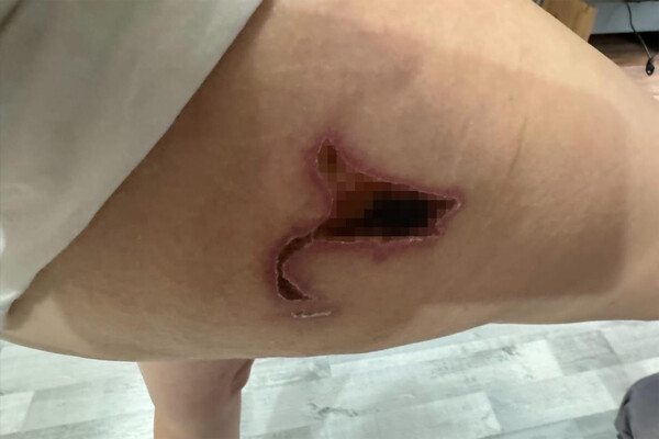 «26 июня 2024 года по предварительной записи я приехала на сеанс массажа из Пятигорска в Минеральные Воды к специалисту, которого посещала не в первый раз. В этот день проводилась аппаратная процедура миостимуляции с инфракрасным прогревом. Во время процедуры я почувствовала, что бедро начинает печь, о чем и сообщила специалисту. Она ответила: «Так и должно быть, все в порядке». Я продолжала лежать, вновь упоминая о жгучем ощущении, пока процедура не завершилась. Когда аппарат отключился и она сняла его с моего бедра, мы увидели отек, покраснение и небольшое углубление, которое массажистка решила расценить как аллергическую реакцию. Она оказала первую помощь, дав антигистаминный препарат и нанеся мазь «Декспантенол», — сказала она.