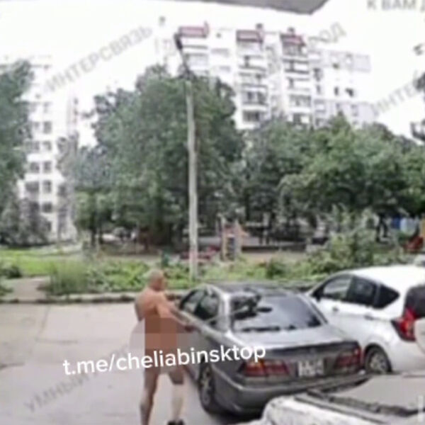 На Урале голый мужчина разгромил машины на парковке и попал на видео