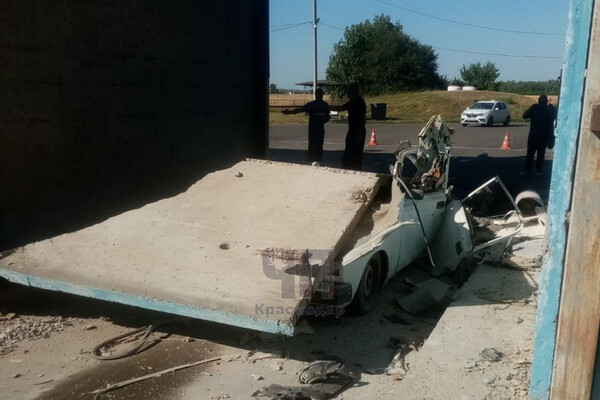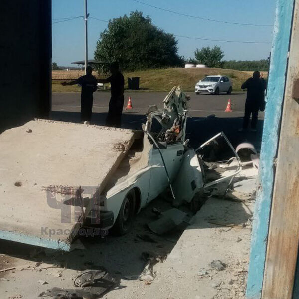Водитель «ВАЗ 2107» поставил автомобиль заправляться метаном и ушел оплачивать. Когда он вернулся к машине произошел мощный взрыв, в результате которого обрушилась бетонная плита. Она упала прямо на автомобиль, раздавив его.