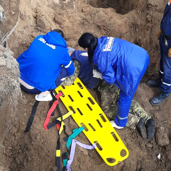 Выбраться из ловушки пострадавший не смог, на помощь ему пришли спасатели. Рабочего погрузили на носилки, достали из траншеи и передали бригаде медиков скорой помощи. По предварительной информации, он получил серьезную травму спины.