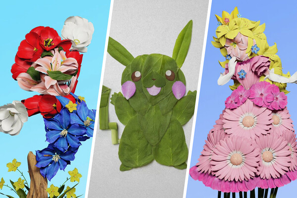 Японский художник Раку Иноуэ воссоздает известных персонажей поп-культуры, используя только цветы и листья. Об этом пишет Oddity Central.