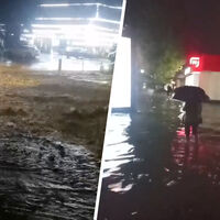 Мощный ливень, обрушившийся на Сочи минувшей ночью, сильнее всего затронул микрорайон Хоста. Местный житель Дмитрий сообщил «Газете.Ru», что из-за стихии оказались затоплены центральные улицы и магазины, а также цокольный этаж местной больницы — она находится рядом с рекой, которая вышла из берегов.