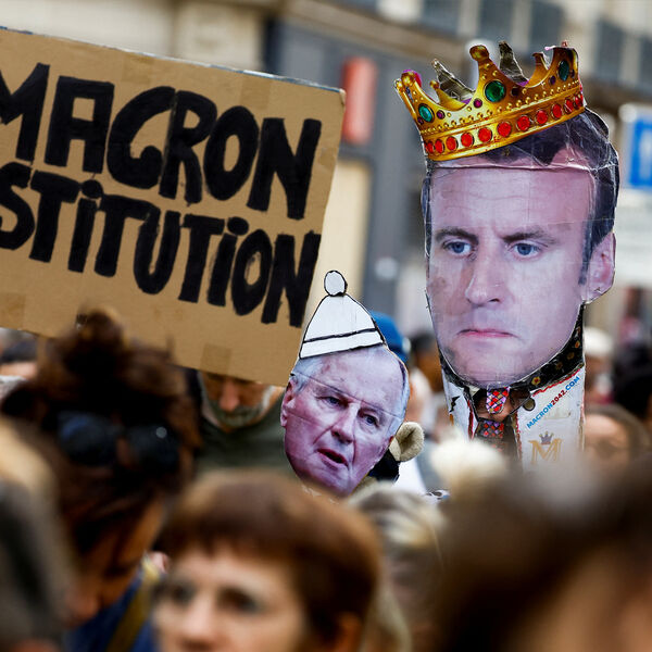 В Париже прошли протесты, на которых призывали президента Франции Эммануэля Макрона уйти в отставку и скандировали: «Долой правительство Барнье!»