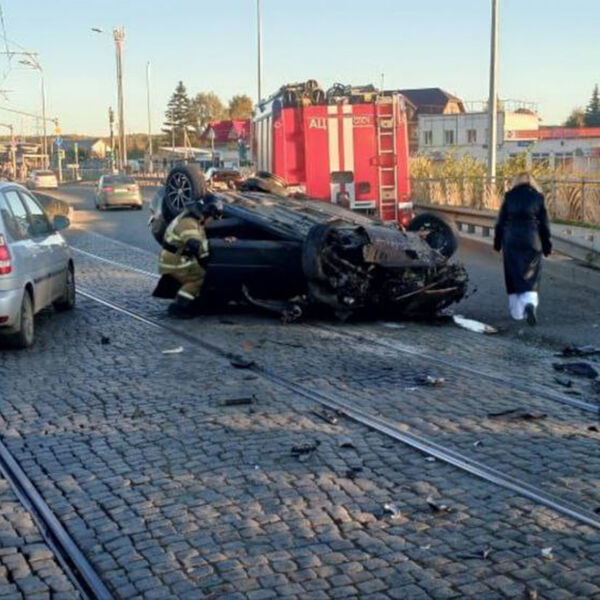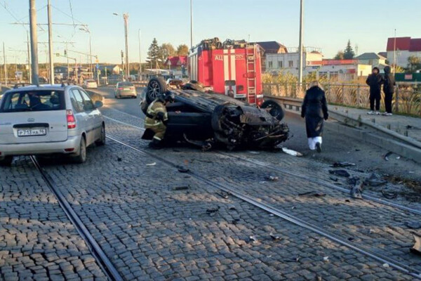 Инцидент произошел на Березовой улице. По предварительным данным, водитель за рулем машины марки Mazda пытался перестроиться, но не справился с управлением и врезался в иномарку, после чего машина опрокинулась на трамвайные пути. На кадрах с места заметно, что автомобиль получил серьезные повреждения передней части.