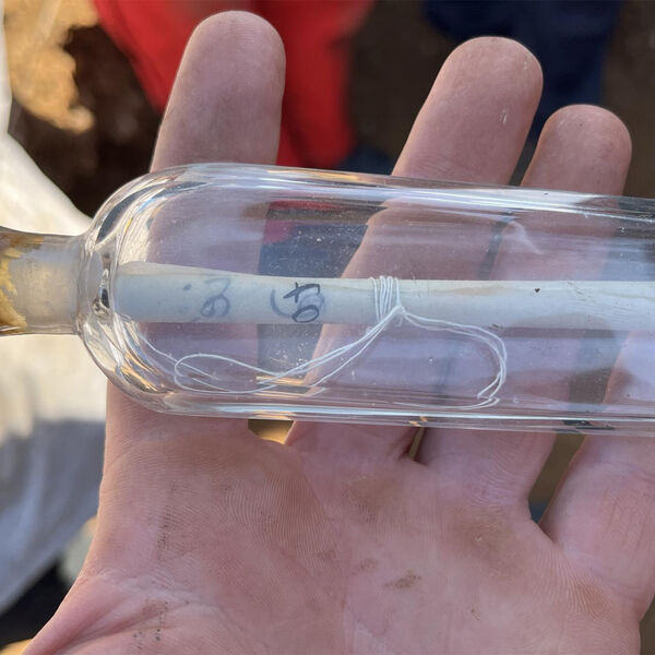 Как сообщают СМИ, студенты, участвующие в археологических раскопках во французском городе, нашли послание в бутылке, оставленное другим археологом 200 лет назад. Гийом Блондель, руководитель региональной археологической службы, рассказал, что практиканты работали на месте руин галльской деревни, находящейся под угрозой эрозии, когда наткнулись на стеклянный сосуд внутри глиняного горшка.