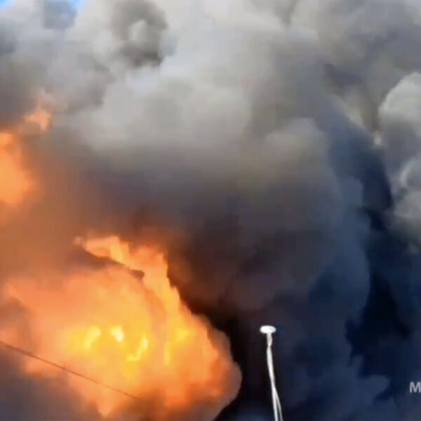 По словам авторов публикации, сейчас сотрудники экстренных служб пытаются потушить возгорание в помещениях, которые пламя еще полностью не уничтожило. Также перед ними была поставлена задача не допустить переброски огня на топливное хранилище, расположенное около здания.