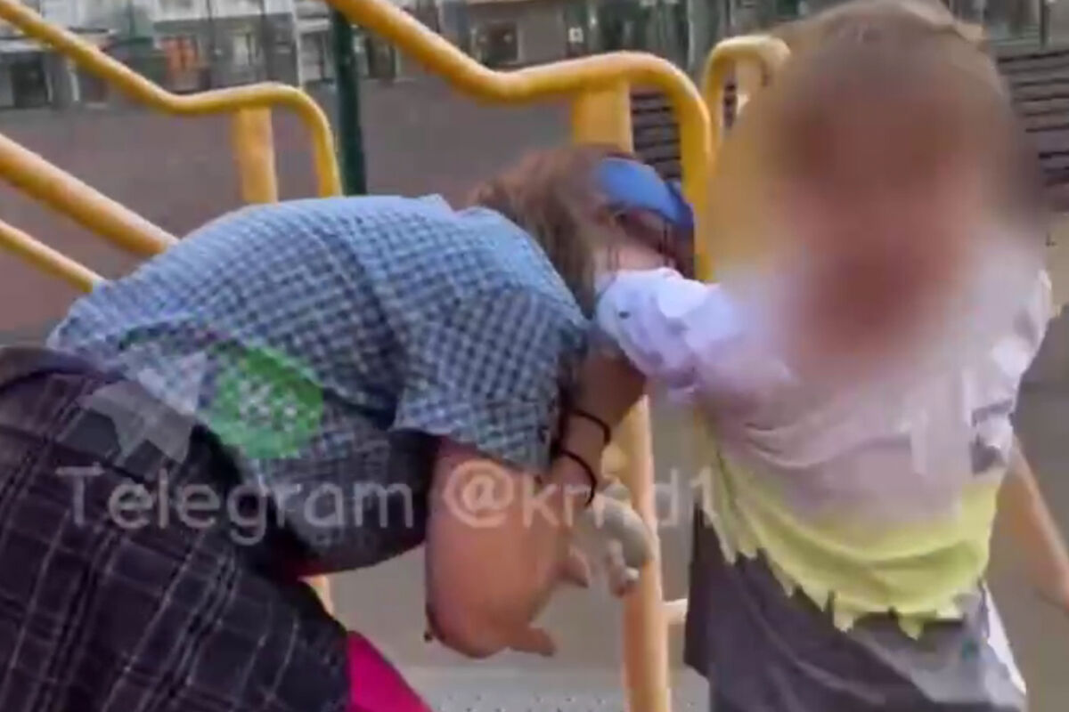 В Краснодаре девочка-квадробер укусила на детской площадке младшую девочку. Видеозапись случившегося опубликовал Telegram-канал «Краснодар №1».