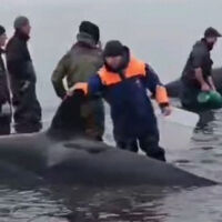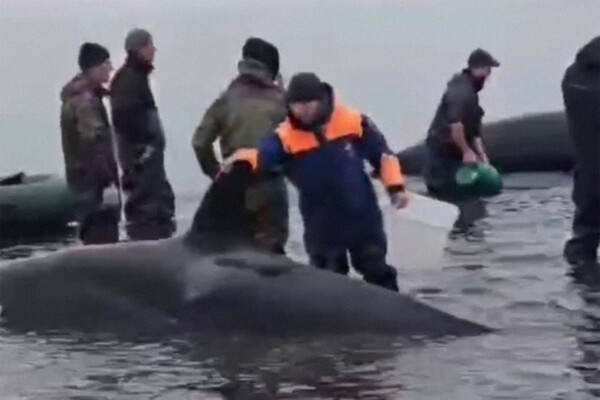 Накануне утром министр по чрезвычайным ситуациям региона Сергей Лебедев сообщал, что семья из четырех косаток оказалась в ловушке лимана в селе Устьевое Соболевского района. Из-за покрытого илом дна техника не могла до них добраться. Весь день их поливали водой в ожидании прилива, на месте работали десятки волонтеров, инспекторы Государственной инспекции по маломерным судам и местные спасатели — они вручную перемещали животных на более глубокие места.