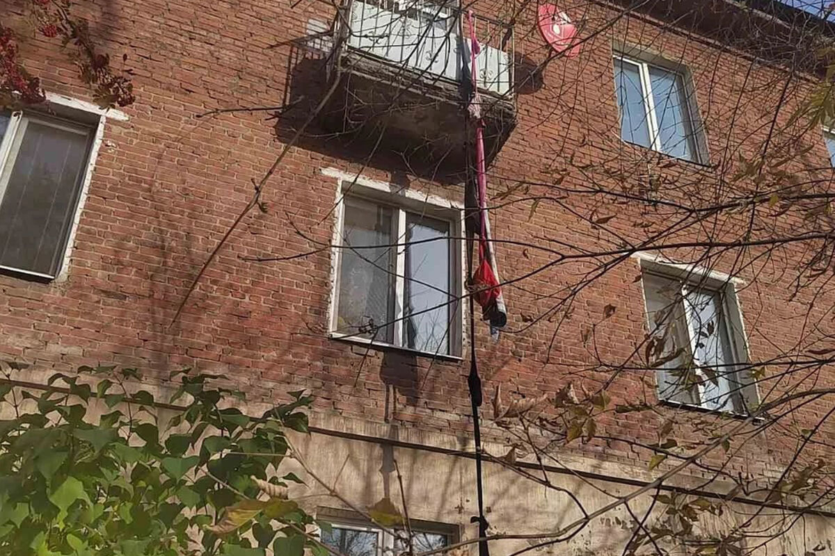Инцидент произошел в доме на улице Бачурина. Пенсионерка решила выбраться из квартиры на третьем этаже и для этого сделала трос. На кадрах с места инцидента можно заметить, что постельного белья было недостаточно для того, чтобы добраться на нем до земли.