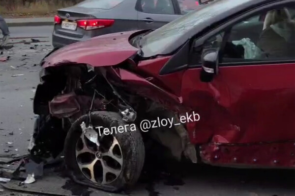 На кадрах с места инцидента, опубликованных в Telegram-канале «Злой Екатеринбург», заметны два автомобиля. Один из них на проезжей части, второй – съехал к ограждению, оба получили серьезные повреждения передней и боковой части.