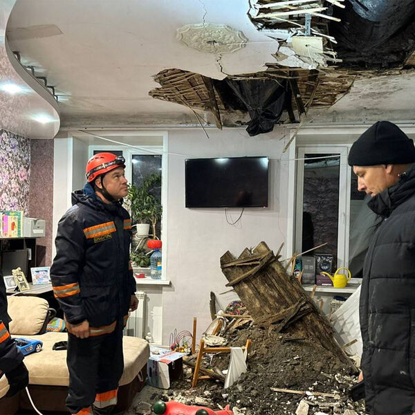 В настоящее время проводится проверка состояния конструкций дома, а спасатели ликвидируют последствия обрушения потолка.