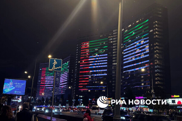 В Москве дома-книжки на Арбате подсветили так, что они окрасились в цвета флага Объединенных Арабских Эмиратов (ОАЭ) — красный, зеленый, черный и белый. Об этом сообщает РИА Новости.
