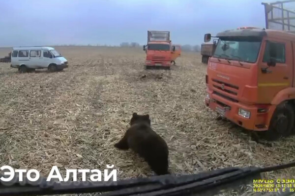 В Алтайском крае на уборку урожая заглянул медведь. Комбайнеры испугались нежданного гостя, но все же успели заснять его на видео. Позже кадры опубликовал Telegram-канал «Это Алтай».