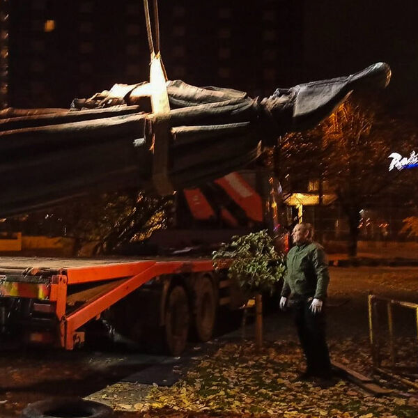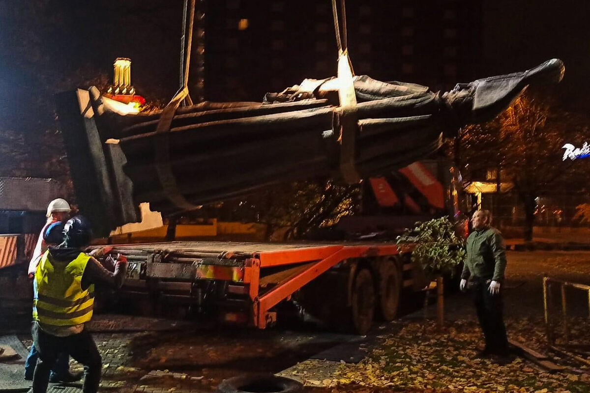 Демонтаж памятника прошел ночью. Во время сноса рабочие также убрали постамент, на котором была установлена статуя полководца.
