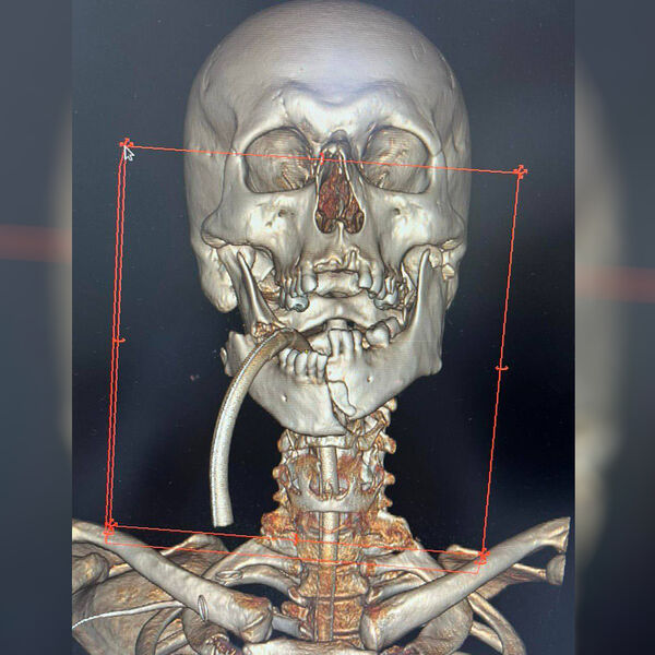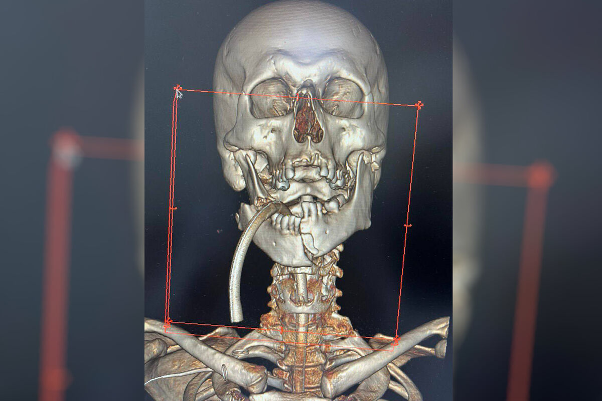 «Мы раскрыли всю нижнюю челюсть в области подбородка и углов с обеих сторон. Отломки в области подбородка были зафиксированы тремя пластинами с шурупами в правильном положении. Затем были зафиксированы отломки в области угла нижней челюсти справа двумя пластинами с шурупами», — рассказали в больнице.