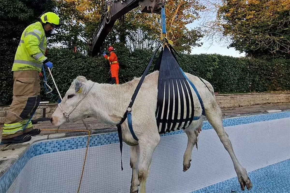 Daily Mail: в Британии упавшую в бассейн беременную корову эвакуировали с помощью крана