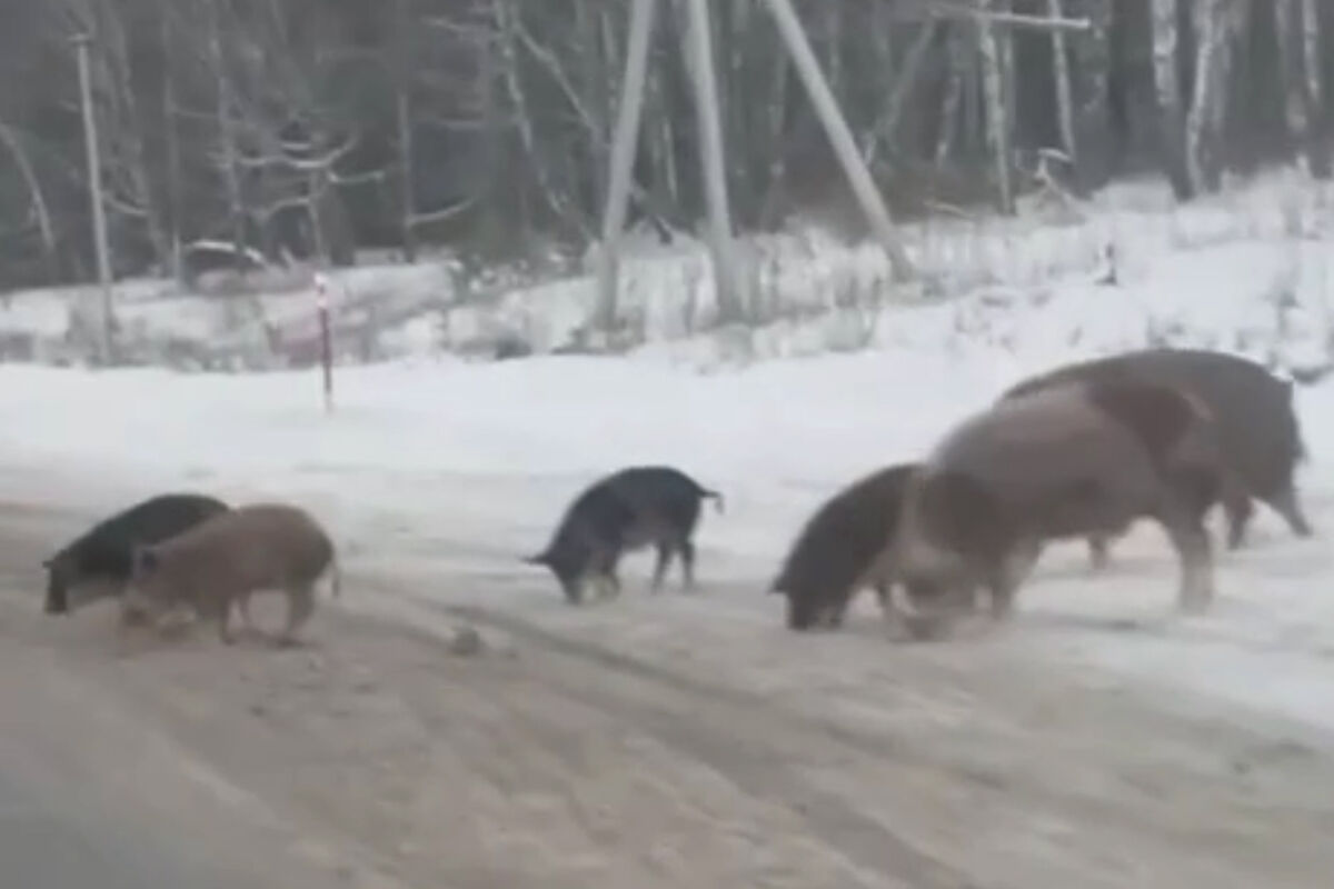 «Одичалые свиньи летом жили в лесу, сейчас выходят на трассу создают аварийную ситуацию», — возмутился кузбассовец.