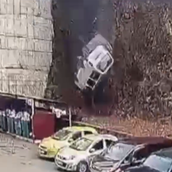 Ранее в Китае на видео попало падение самосвала с обрыва вместе с водителем.