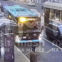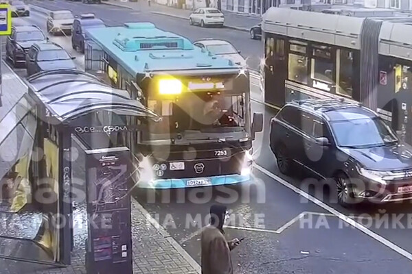 В Петербурге автобус врезался зеркалом в остановку и снес ее