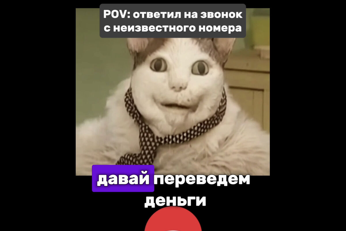 «Бу! Испугался? Не переживай, я твой друг и не собираюсь причинять тебе вред. Подходи ближе, соединись со мной, посмотри мне в глаза и сообщи код из СМС. Давай переведем деньги на специальный безопасный счет. Ты не хочешь? Почему? Что-то не так?» — говорит кот в этом видео.