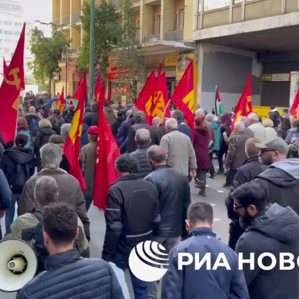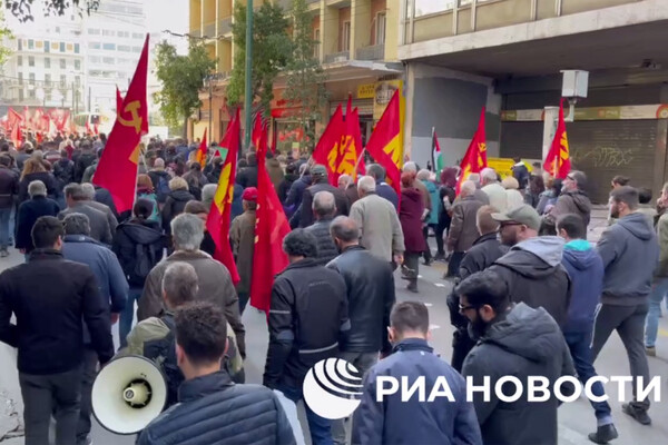 «Греция вне войны! Закрыть базы США и НАТО! Прекратить военные миссии за пределами страны! Прекратить любую военную помощь режиму Зеленского!» — скандируют демонстранты.