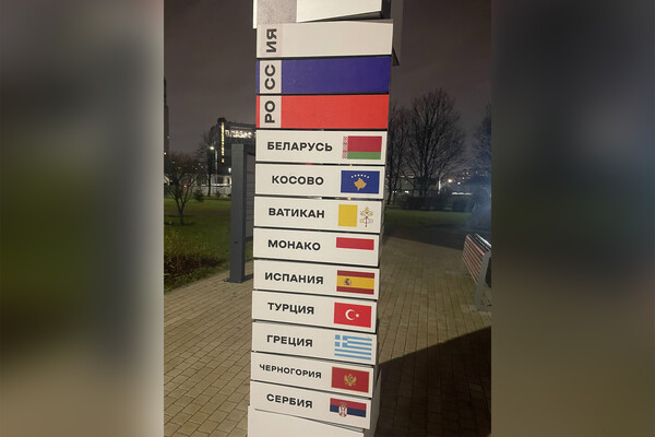 Кроме того, авторы инсталляции допустили ошибку в названии «Андорры», написав его с одной буквой «р», и сократили наименование Боснии и Герцеговины до «Боснии».