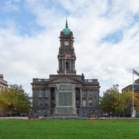 Ратуша Биркенхеда была построена в 1887 году по проекту местного архитектора Чарльза Эллисона с использованием шотландского гранита и песчаника из ныне засыпанного местного карьера в Сторетоне.