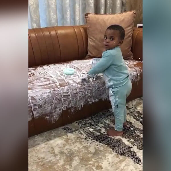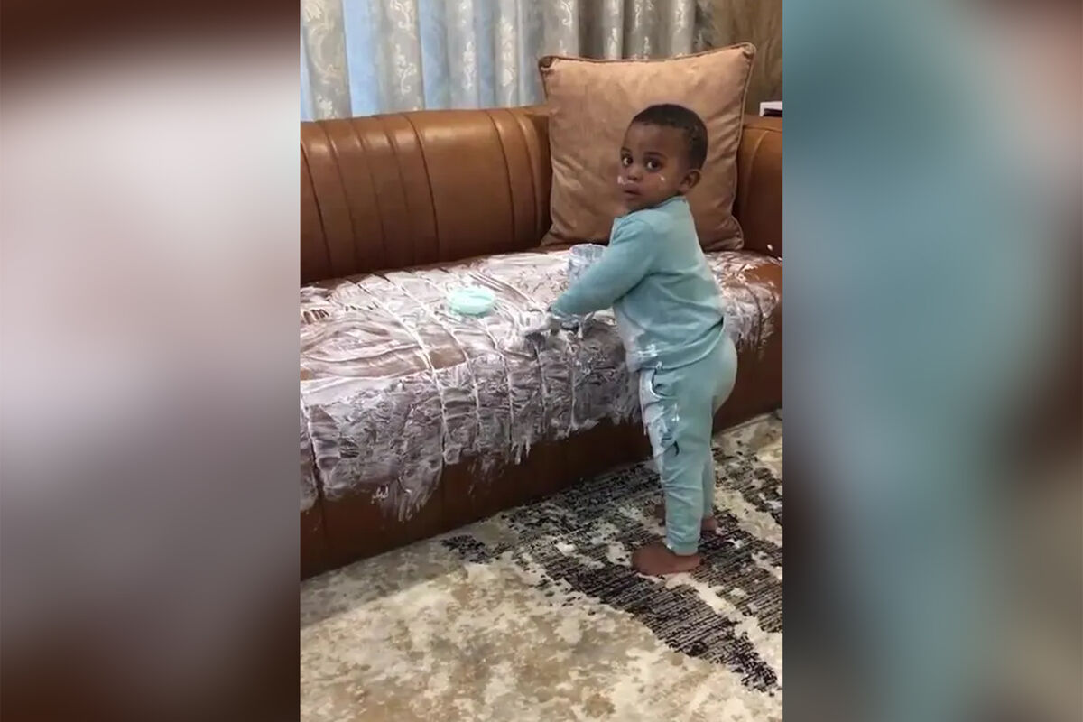 Женщина по имени Мфо Рамбувани рассказала, что «пережила настоящий шок», когда увидела, чем занимается ее двухлетний сын Муриса. Мальчик вылил целый тюбик крема для кожи на диван.