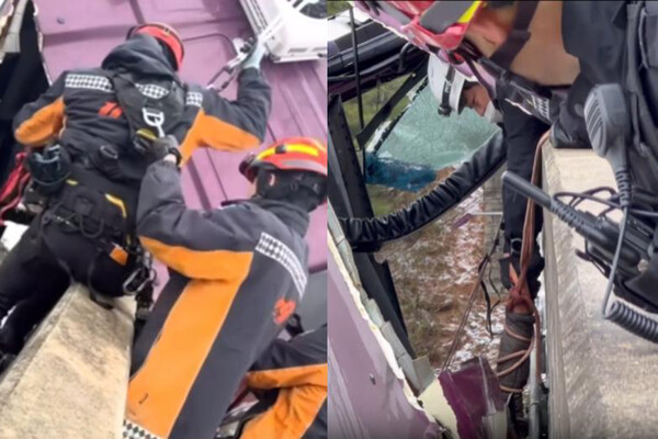 Как пишут СМИ, пожарный Пак Джун Хен стал свидетелем аварии на скоростной автомагистрали Чунган в провинции Северный Кенсан. Грузовик с прицепом врезался в перила моста, в результате чего часть кабины оказалась подвешенной над землей на высоте 11 метров.