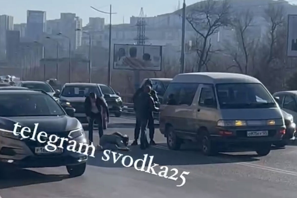 Во Владивостоке водители и пассажиры двух машин подрались прямо на дороге после конфликта. Инцидент снял на видео один из очевидцев. Позже запись опубликовал Telegram-канал «Svodka25 l Новости Приморья и Владивостока».