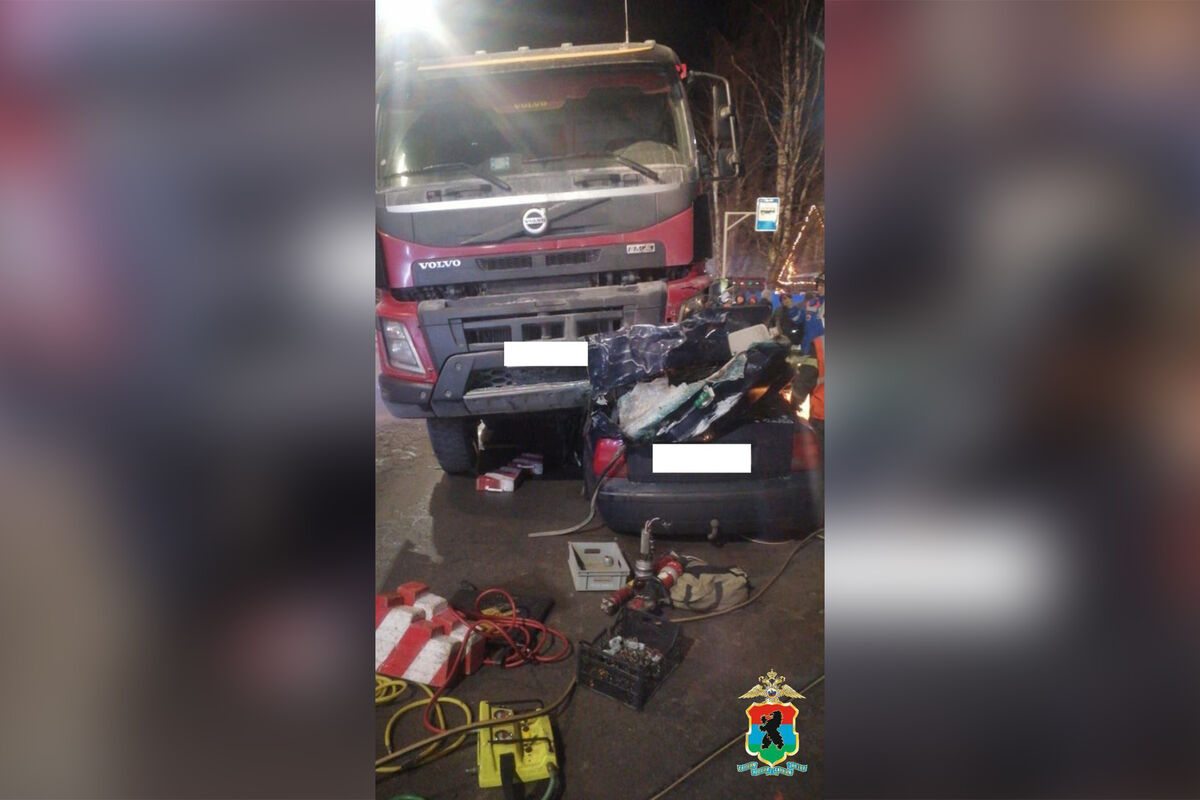 Инцидент произошел на Ключевой улице. По версии сотрудников ведомства, столкнулись большегруз и легковой автомобиль, который ехал во встречном направлении.