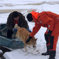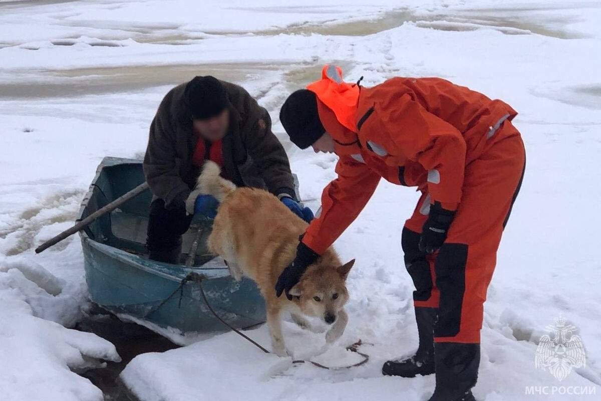 В Архангельской области спасли провалившихся под лед пенсионера и собаку