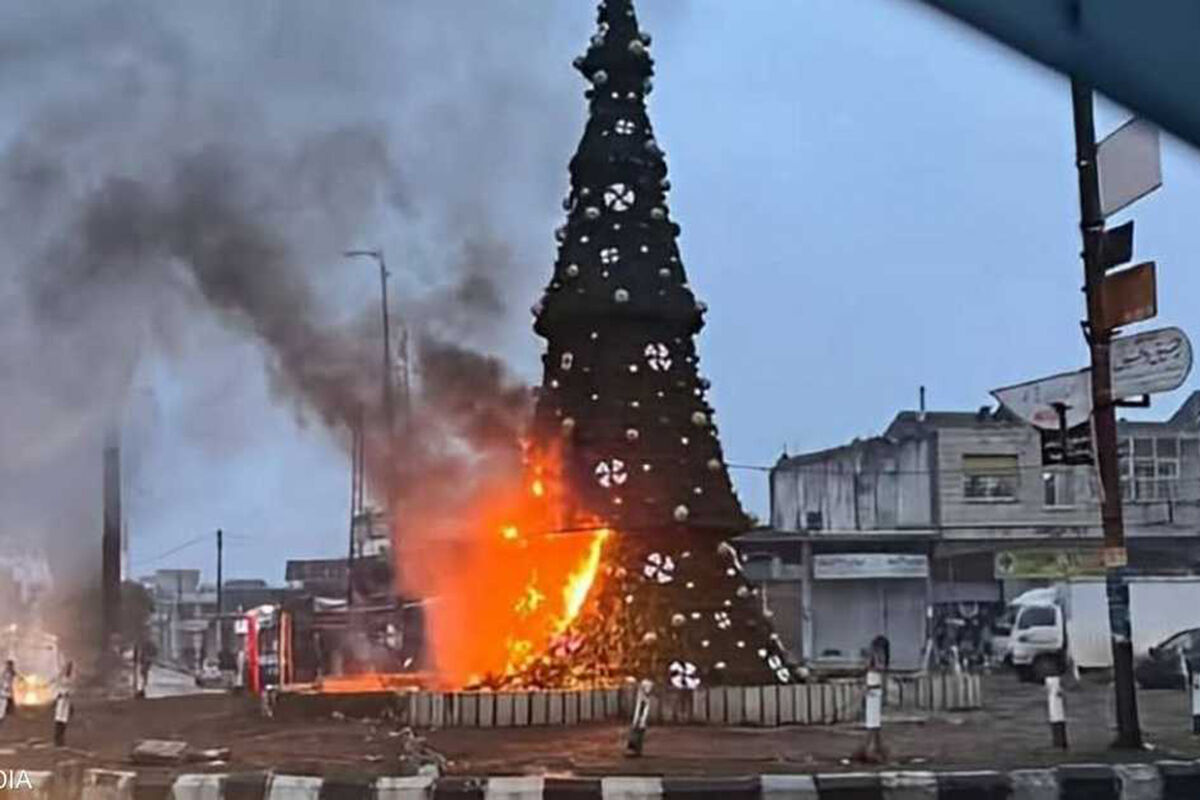В центре сирийского города Эс-Сукейлабии боевики в масках подожгли рождественскую елку. Об этом передает телеканал Sky News Arabia.