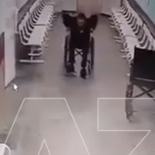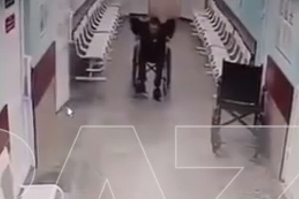 Охранник решил помочь и отвез мужчину в больницу. На кадрах с места инцидента заметно, как сотрудник ЧОП катит на коляске согнувшегося мужчину, но в какой-то момент останавливается и заходит в кабинет.