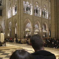 После музыкального бдения в 23:00 полуночную мессу провел архиепископ Парижа Лоран Ульрих. 25 декабря, на само Рождество, архиепископ также проведет службу в 11:00. В этот день запланированы еще две службы: в 8:30 и 18:00.