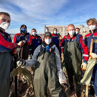 Всего волонтеры уже вывезли более 16 тыс. тонн загрязненного грунта. Волонтерам также помогают местные жители и представители разных организаций.