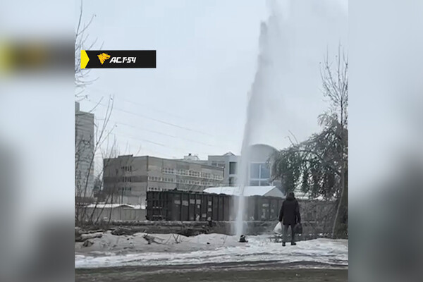 В Новосибирске из-под земли забил гигантский фонтан. Видео с места инцидента опубликовал Telegram-канал «АСТ-54 Black».
