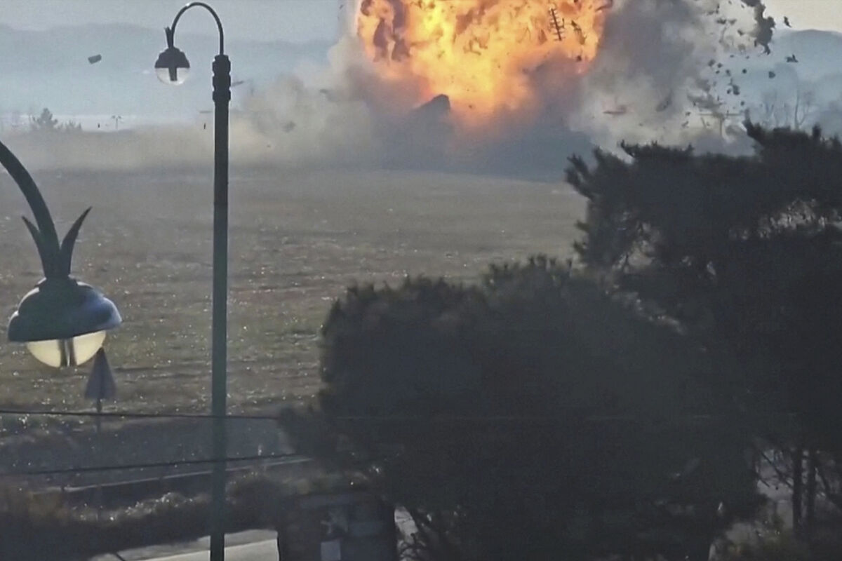 Южнокорейское телевидение распространило кадры крушения пассажирского самолета Boeing 737 рейса 7C 2216 авиакомпании Jeju Air в аэропорту Муан. Видеозапись размещена в Telegram-канале РИА Новости.