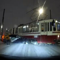 По данным телеканала, перед столкновением человек за рулем пытался тормозить, но, так как на дороге было много снега, не смог этого сделать и влетел в трамвай.