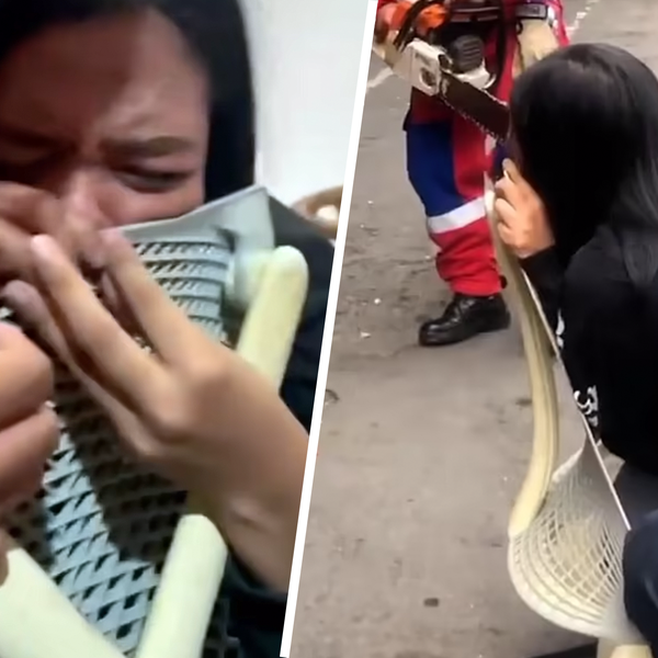 Поняв, что без помощи спасателей не обойтись, они вызвали местную пожарную службу. Пожарные, не имея возможности сразу освободить женщину, осторожно перенесли ее вместе с креслом в машину и отвезли на свой пост.
