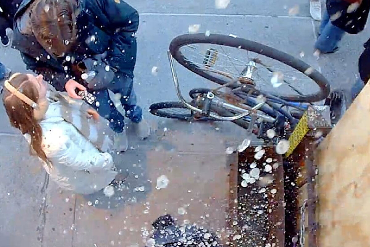 Как рассказали предприниматели Зои Лазерсон и Брэндон Минтон, в один из дней нарушительница общественного порядка выплеснула ведро мочи на одного из владельцев и подростков в очереди. В другой день она разрисовала стенд рядом с фотобудкой и кашпо фекалиями. После случившегося потерпевшие подали к художнице иск размером 500 тысяч долларов. Заявители так же указали, что агрессор заклеивала замок в фургоне техобслуживания, который был припаркован рядом с будкой, суперклеем и высказывала в их адрес угрозы.